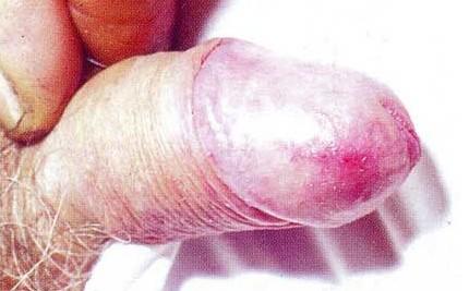 2、龟头炎:龟头是念珠菌病的好发部位,尤以包皮过长者常发生念珠菌性龟头包皮炎,局部红肿瘙痒、附有“白渣”。病人及其家属也可能患其他念珠菌病。例如其妻常同时患念珠菌性阴道炎、乳头炎;其婴儿可能患念珠菌性口腔炎等。发生这种情况时,必须及时治疗。