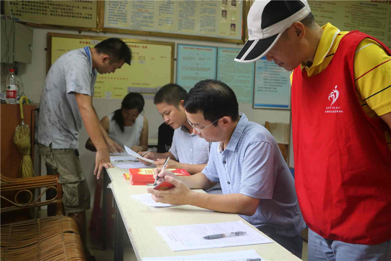 在万力社区流动献血现场,大家热情高涨,踊跃参与,依序进行献血登记、填表、量血压、测血型等,顺利通过之后再进行采血。